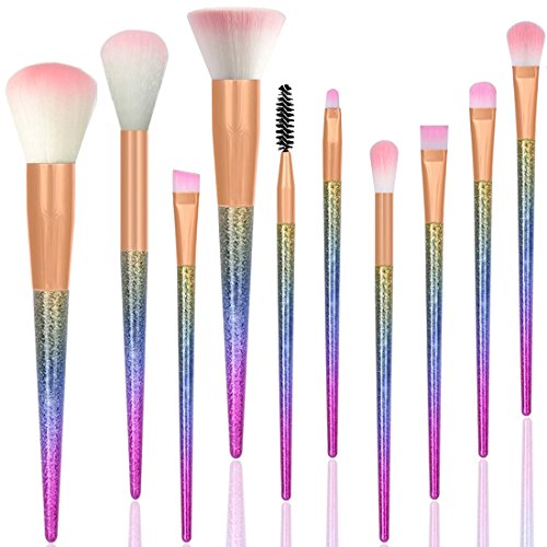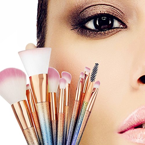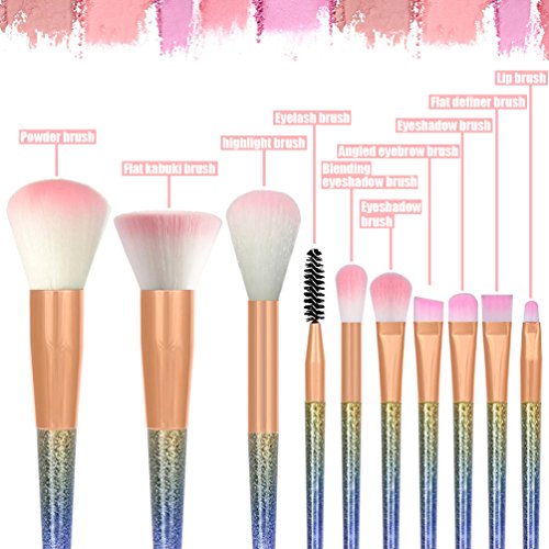 ✅ KINGMAS FANTASY BRUSH SET: Powder Brush, Flat Kabuki Brush, Highlight Brush, Concealer Brush, Eyeshadow Brush, Blending Brush, Flat Definer Brush, Angled Eyebrow Brush, , Lip Brush, Eyelash Brush.