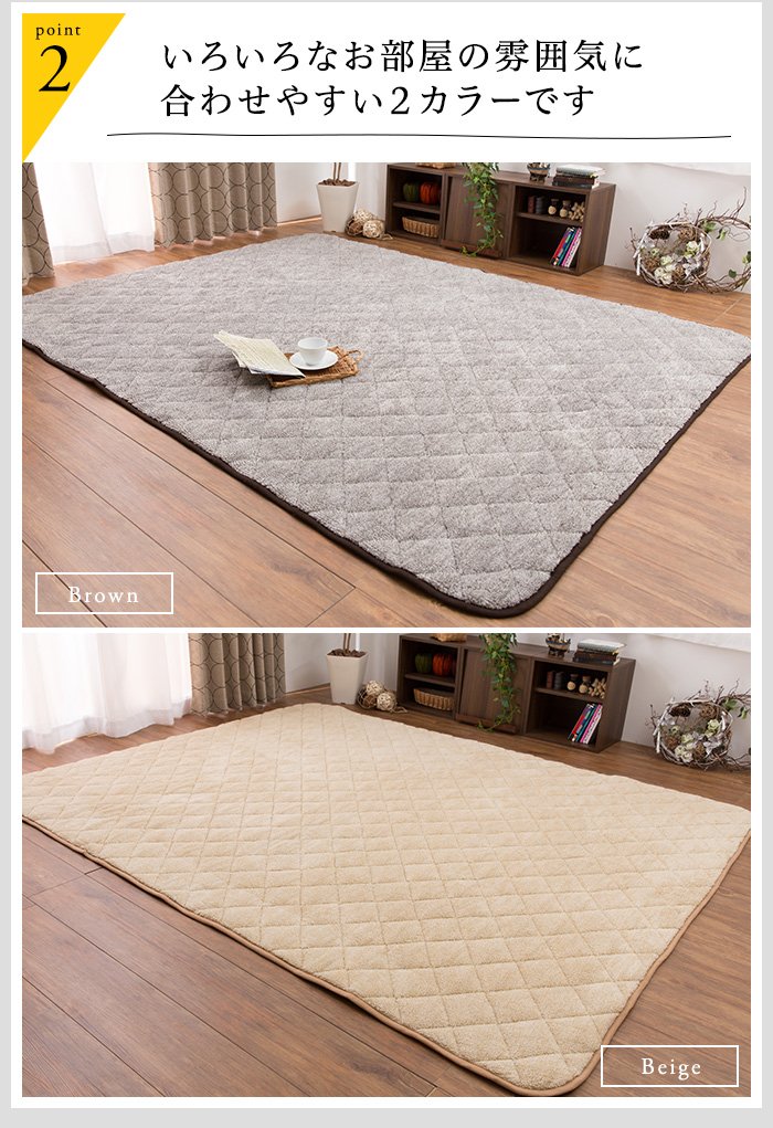 Smooth touch. It feels fluffy and feels good. And, it is warm. The microfiber has better feeling and easier to remove dirt than the wool type. Besides, low price. The back is subjected to anti-slip processing, the size is perfect for a kotatsu. However, when I pulled out of packaging, I had a bad smell, but it disappeared overnight. After lunch on holiday, when I slam down with a blanket, I feel happy and feel warm.