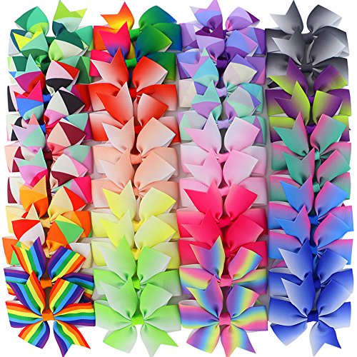 Binding : Misc. Product Description The boutique hair bows are handmade with 3Inch grosgrain ribbon.these baby hair bows are attached a 45mm lined alligator clip. infant hair bows are perfect for newborns babies toddlers baby girls teens little girls big girls women etc. and the barrettes really nice perfect for girls. They are the perfect size you are looking for and with so many beautiful colors has one to match every outfit you will ever wear.You can use them to dress up any outfit, the uses are endless. The fantastic variety of colors are so gorgeous bright and beautiful; Set of great variety of colors to match your outfit; Match anything wearing for the day.All ends are heat sealed to prevent fraying and ensure your hair bows look as beautiful as the princesses wearing them. Please note that the colours and brightness of the actual product may be slightly different due to monitor settings. 0