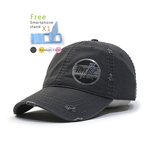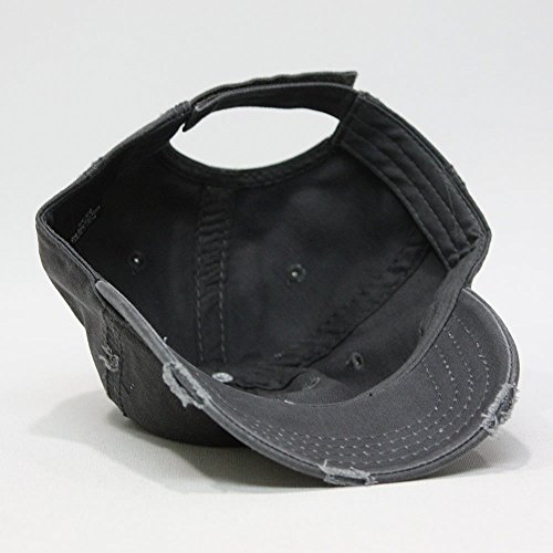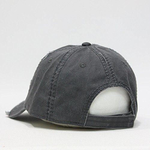 Title : Plain Washed Cotton Twill Distressed with Heavy Stitching Low Profile Adjustable Baseball Cap (Charcoal Gray)