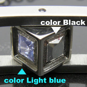 スワロフスキーの入ったサイコロが回るデザインのトップです。ホワイト、ブラック、ブルー、スカイブルーの4色のスワロフスキー、それぞれ違った雰囲気を造りだしてくれます。