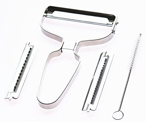 ★Vegetable julienne peeler with 3 replacement blades, ultra sharp and 2.8" wide peeler blades for cabbage, two different shredding blades for Zoodle&Pasta lovers