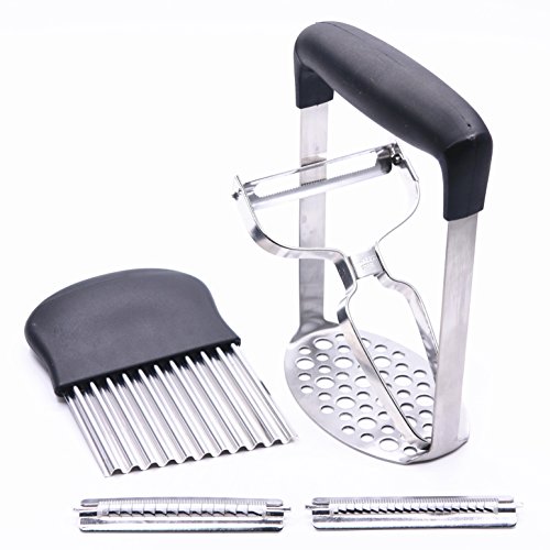 Potato Masher with Wavy Potato Cutter & Tri-Blade Julienne Peeler, Pack of 3
