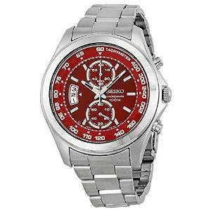 Seiko 세이코 레드 Dial 크로노그래프 스테인레스 스틸 Mens Watch SNN253 남성용 맨즈 손목시계 (병행수입)