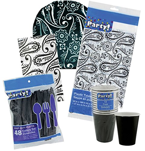 Black and White Paisley Paper Plate Party Bundle