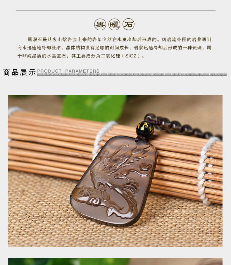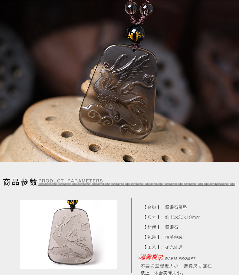 开光属龙人吉祥物吊坠火凤献符黑曜石项坠鸡年饰品男女款