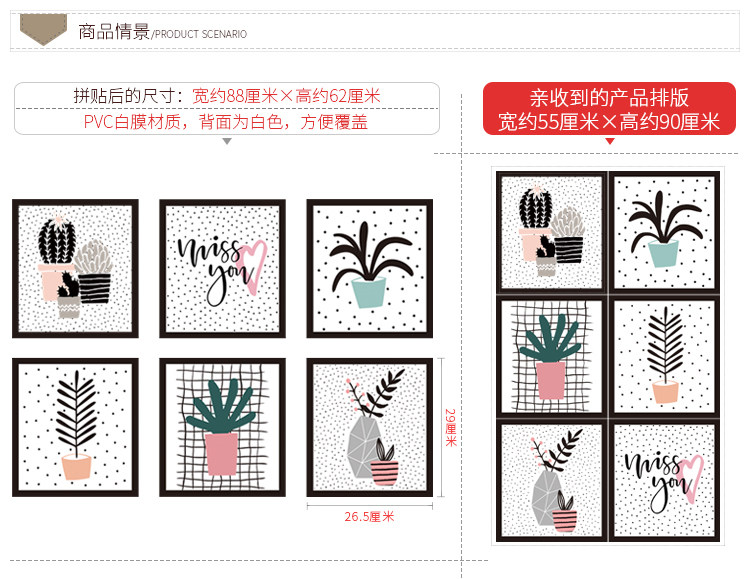 墙贴盆栽线条客厅文艺简约现代大学生寝室画框背景墙壁装饰画贴纸
