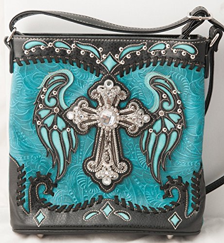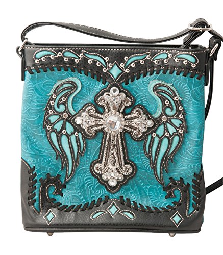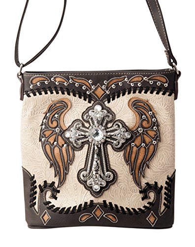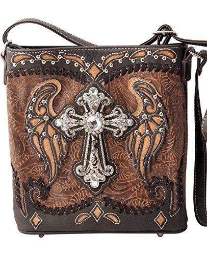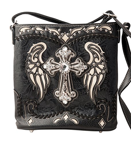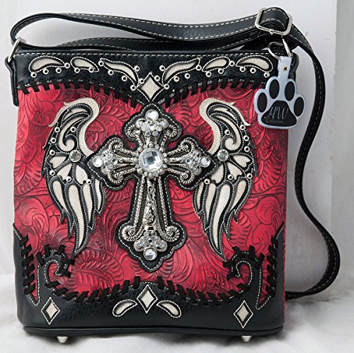 -. Title : HW Collection Western Cross with Wings Stitching Concealed Carry Crossbody Handbag Messenger Bag