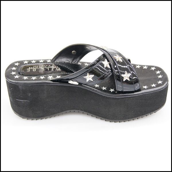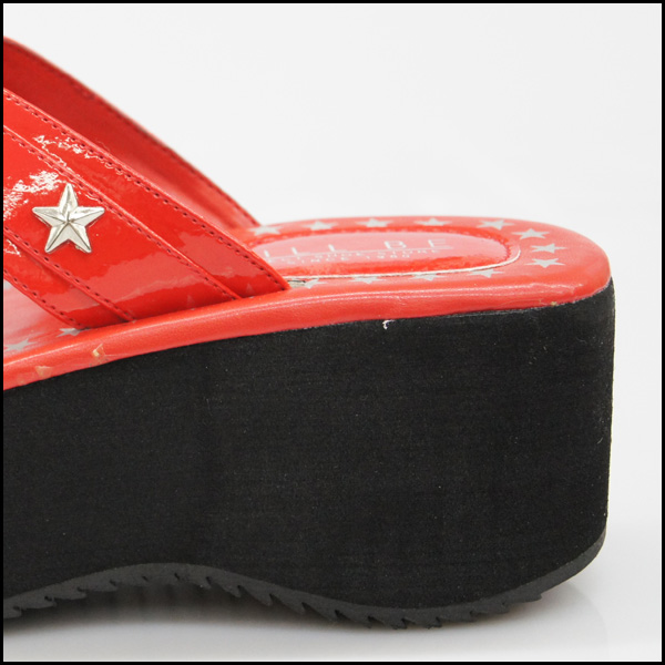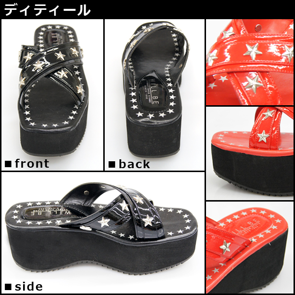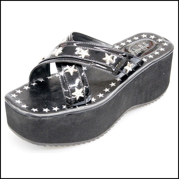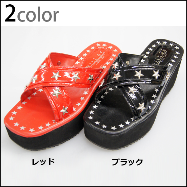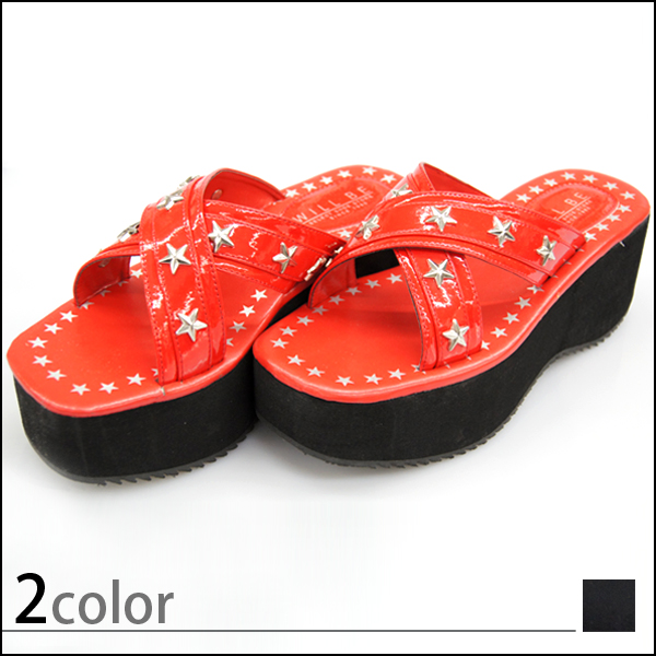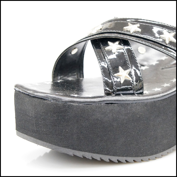 アッパーをスターデザインのクロスベルトで仕立てた抜け感たっぷりな厚底ウェッジサンダルです。