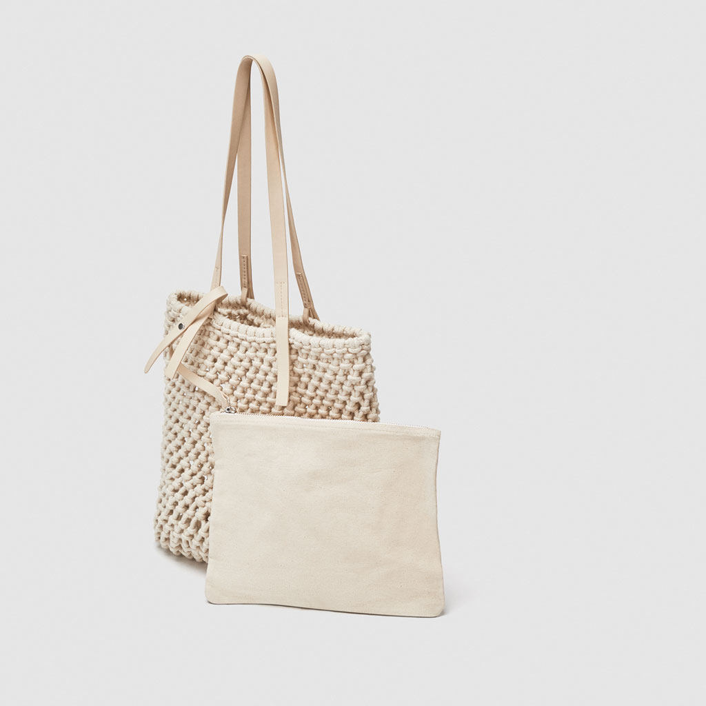 编织购物包,有多种颜色可选。内设拉链小包。设有肩带。