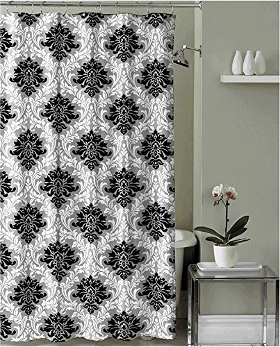 Black Grey White Embossed Fabric Shower Curtain: Floral Damask Design