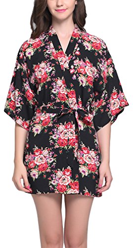 FLYCHEN Women's Short Floral Kimono Robes Bridal Sleepwear Wedding