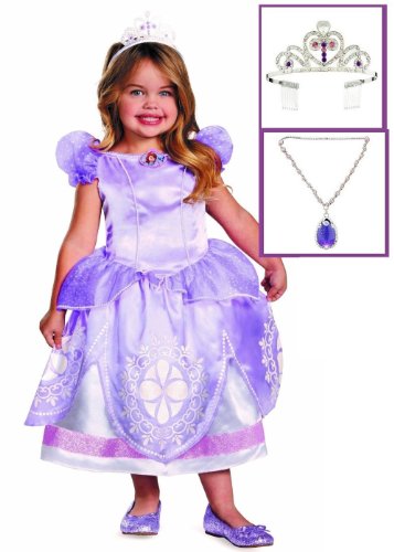 -. Brand : Disney -. Color : Purple -. Department : girls -. Feature : Includes: dress, tiara and light up necklace / Toddler Fit / Dress is officially licensed -. ProductGroup : Apparel -. ProductTypeName : APPAREL -. Title : Disney Princess Sofia the First Toddler Deluxe Royal Dress Costume