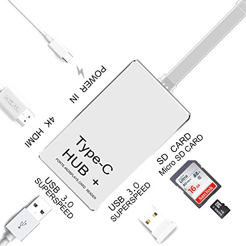 -. Feature : Compatibility - Compatable with Apple Macbook12/MacBook pro, DELL Venue Pro,HP Pavilion x2, Lenovo YOGA 900S , Chromebook Pixel, ASUS Gigabyte,Microsoft 950,950XL. / Expand the Type C Port - 2 x USB 3.0 ports + 1 x HDMI port + 1 x SD card reader +1 x Micro SD card reader + 1 x USB Type-C charging port. / SuperSpeed USB 3.0 - Transfer data over USB 3.0 at incredible speeds, up to 5Gbps. Two USB 3.0 Ports allow you to connect Keyboard, mice, hard disk, hub, U-disk,and charge your mobile phones. / 4K Video Adapter - Mirror or extend your screen with the HDMI port and directly stream 4K(2160P 30HZ)UHD or Full HD (1080P 60HZ) video to HDTV, monitor or projector. / Plug and Play - does not require any software, drivers, or complicated installation process.