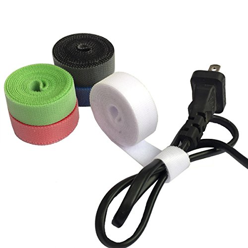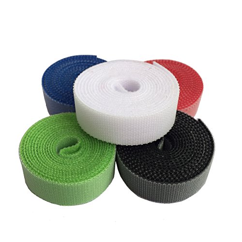 JLD textile Reusable Cable Straps Cable Ties Hook & Loop Nylon Fastening Tape Power Wire Management 5Rollx1M/bag