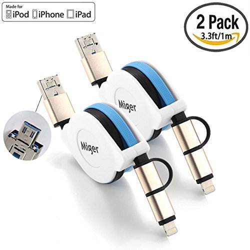-. Title : Miger 3.3ft Retractable OTG Flat Charge and Sync 2-in-1 Cable with Lightning and micro USB connectors for iPhone, iPad, iPod Touch 5/Nano 7 on iOS9, Samsung & more.