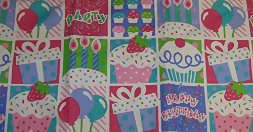 Product Description Happy Birthday Pink Purple Vinyl Tablecloth with Flannel Back - A bright and cheerful addition to your birthday party celebration! 0