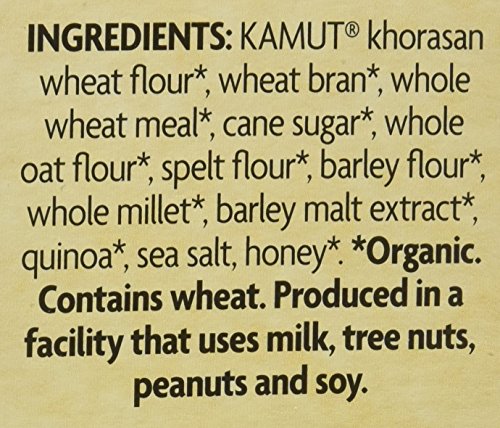 -. Feature : Pack of 6 (total 80 oz) / Certified organic; Kosher ingredients;including kamut wheat bran, smelt flour, whole wheat meal, and honey / Only 130 mgs of sodium ; 5 grams of fiber, 4 grams of protein, and 10% RDA of iron / As part of a fiber-rich diet, may reduce the risk of some types of cancer / Product of Canada