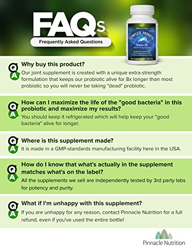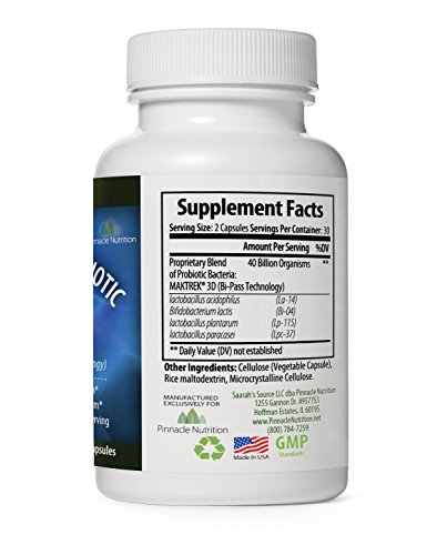 -. Binding : Health and Beauty -. Brand : Pinnacle Nutrition -. EAN : 0642345996879 -. Feature : ★ BETTER DIGESTION FOR A BETTER YOU - Pinnacle Nutrition Probiotics is a premier blend of Lactobacillus Acidophilus & Bifidobacterium that's 40 BILLION CFU'S strong! Using one of the most potent formulations available, we ensure our probiotics make their way all the way to the large intestine where they are most effective at reducing digestive discomfort! / ★ EASY IN, EASY OUT -With some probiotics, you'll encounter the hard to swallow, or just downright nasty; not with us! Our capsules are tasteless, odorless, and go down like a dream. Best of all, they actually work. Keeping you regulated is our game, and we think it's about time you got the results you deserve. / ★ THAT GUT FEELING -Immunity happens in your gut, where 80% of your immune system lives. The best way to decrease the likelihood of sickness is tackle the problem at the source. That's why we've paid special attention to the strength and fortitude of our formula. We bring you health and intestinal wellness with each and every capsule. / ★ GUARANTEED -When you invest in yourself, we want you to do so stress free. After all, stress isn't going to help your regularity, is it? That's why we offer an unconditional MONEY BACK GUARANTEE! If for any reason you're not ecstatic about your purchase, just let us know, and we'll refund every penny. / ★ PRE AND PRO -We understand the importance of making sure that the probiotics survive long enough through the harrowing journey through your body to be effective. Our strains are proven to last up to 8x longer in your digestive system thanks to our prebiotic included in the formula! Without a prebiotic, any probiotic is just about worthless, so buy the best. Buy Pinnacle Nutrition! -. IsAdultProduct : 0 -. Label : Pinnacle Nutrition -. LegalDisclaimer : The statements on this page have not been evaluated by the Food and Drug Administration. This product is not intended to diagnose, treat, cure or prevent any disease. -. Manufacturer : Pinnacle Nutrition -. MPN : pn_probiotic_60 -. PackageQuantity : 1 -. PartNumber : pn_probiotic_60 -. ProductGroup : Health and Beauty -. ProductTypeName : HEALTH_PERSONAL_CARE -. Publisher : Pinnacle Nutrition -. Studio : Pinnacle Nutrition -. Title : Pinnacle Nutrition 40 Billion CFUs Probiotics - Lactobacillus Acidophilus Premium Digestive Supplement To Reduce Gas, Bloating, & Constipation in Men, Women. 60 Capsules, Moneyback Guarantee Included -. UPC : 642345996879