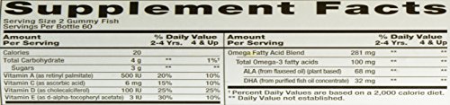 Dietary supplement. Natural lemonade, cherryade and strawberry lemonade flavors. American Culinary ChefsBest Award winner. The ChefsBest Award for Best Taste is awarded to the brand rated highest overall among leading brands by independent professional chefs. 2 gummies = 120 mg of omega-3 fatty acids (ALA, DHA, EPA). Excellent source of DHA. Contains 32 mg of DHA per serving, which is 20% of the 160 mg suggested daily intake. Contains no wheat (gluten), milk, eggs, peanuts or tree nuts. Made in the USA.