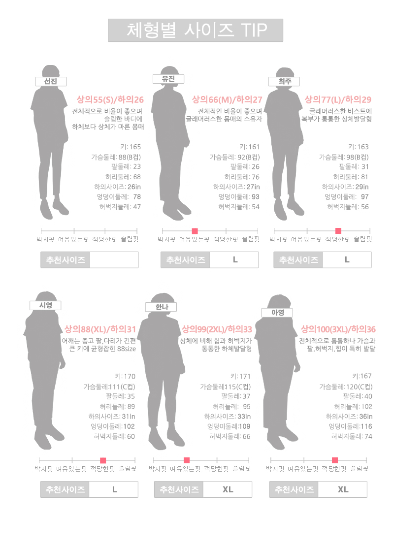 자세한 사이즈는 상세 사이즈 표를 참고해 주세요^^