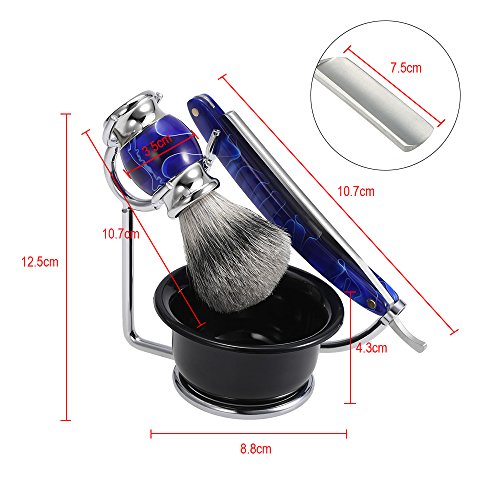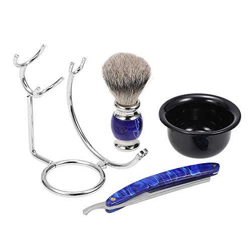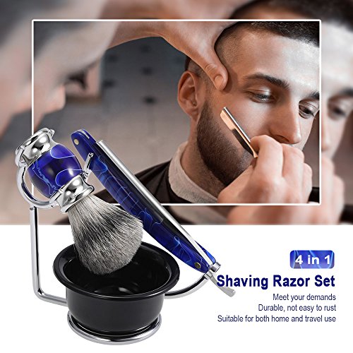 Anself 4 In 1 Facial Shaving Set Shaving Holder + Straight Razor + Soap Bowl + Blaireau Brush