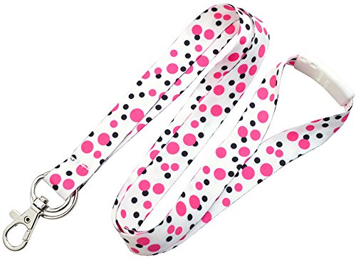 Polka Dot Pink Black and White - Break Away Lanyard with Key Ring and Trigger Hook