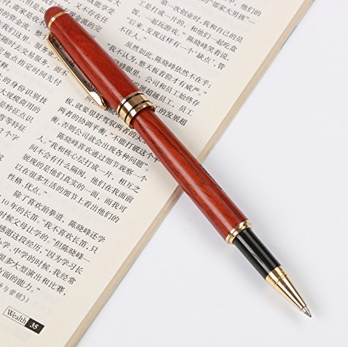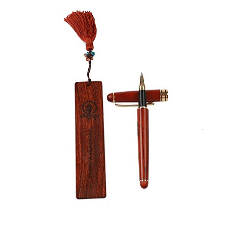 MengRan Bookmark and Pen Set Natural Handcrafted Rosewood Pen and Bookmark / Ruler, | Luxury Signature Gel Pen | Rollerball Pen Gift Pen Set