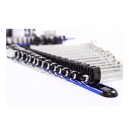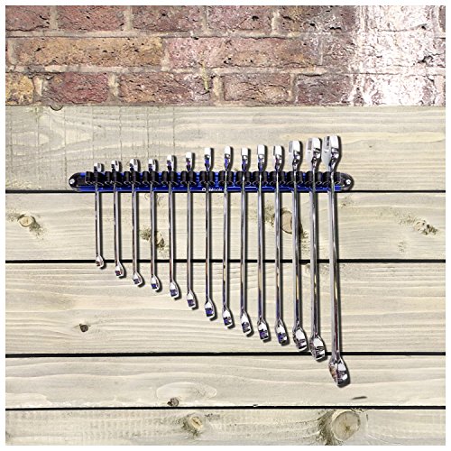 ★ STYLISH AND EFFICIENT – BLUE Wall Mounted Wrench Organizer with 14 BLACK Swivel Clips