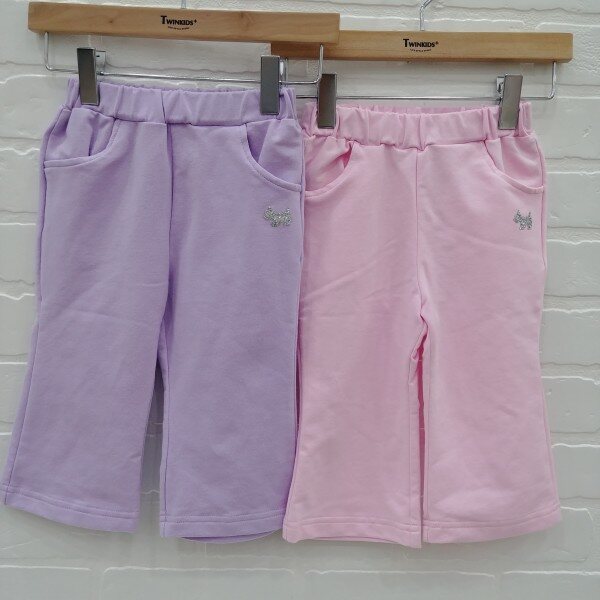 스판성 좋은 져지 소재의 여아 부츠컷 팬츠.
