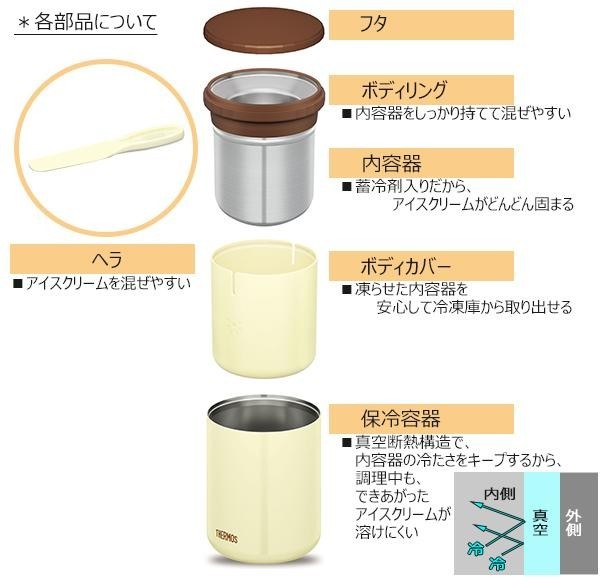 真空断熱構造でできた保冷容器を利用して、手軽に自分好みのアイスクリームを作ることができます。あらかじめ冷やしておいた容器に材料を入れて混ぜるだけなので、お子さんとのおやつ作りにも最適です。 |