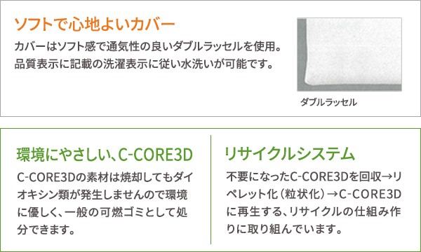 | 素材・材質 | 【中材】 ポリエチレン 【カバー生地】 カバー:ダブルラッセル |