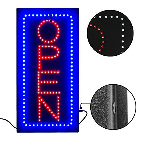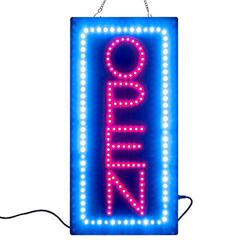 Leadleds 1910-2 Open Sign Portable 19-inch Height Vertical Neon Sign with 2 Light Modes for Bar Tattoo Salon Store Beauty Spa Business