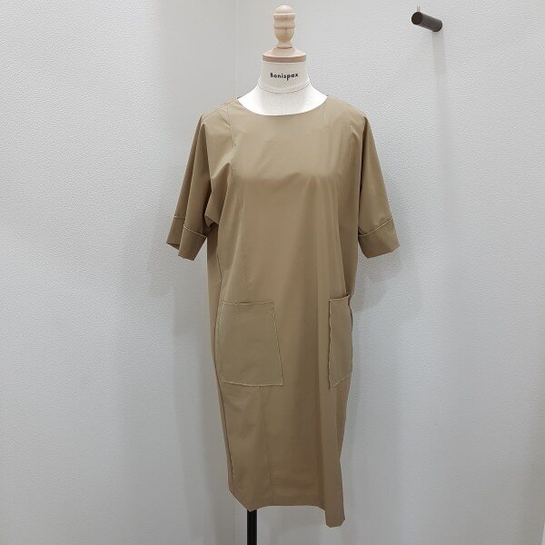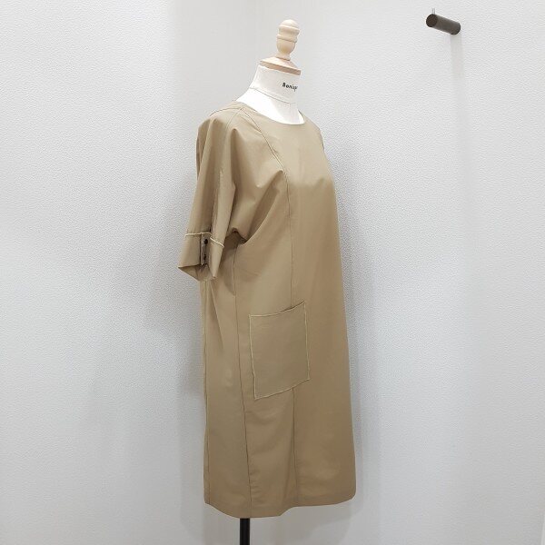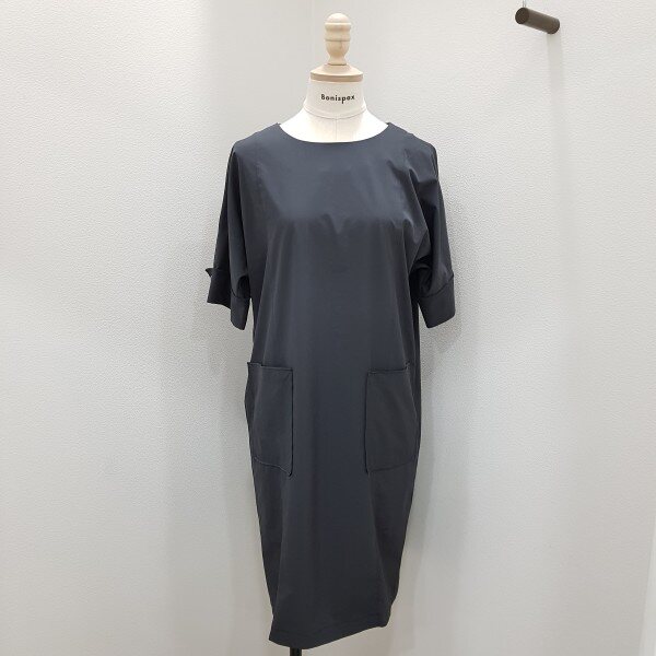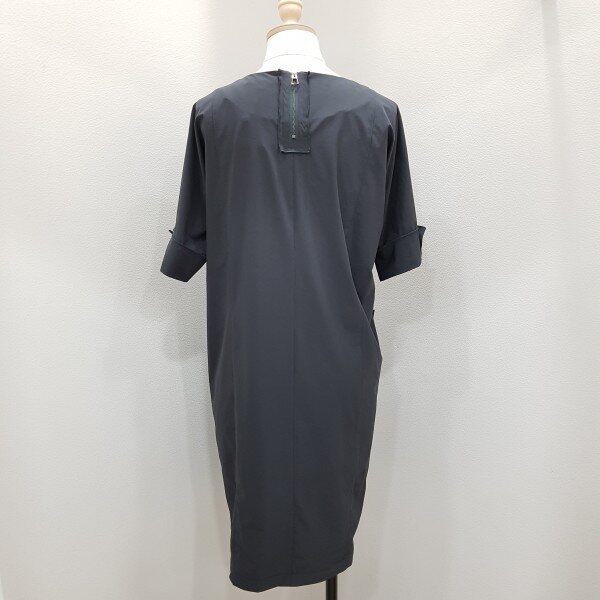 2018년 가을 신상 원피스로, 배색에 플리츠 원단을 가미해 유니크한 매력이 돋보이는 디자인입니다.