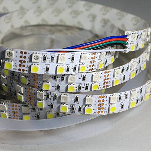 Alarmpore (TM) 16.4FT Double Row 5050 RGBW RGB White LED Strip 5M 600Leds SMD Flexible Light 120Leds/M 12V DC Non-waterproof