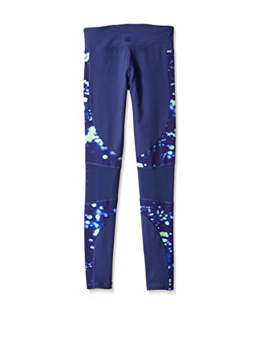Printed legging with contrast colorblocking, flatlock seaming and wide waistband.