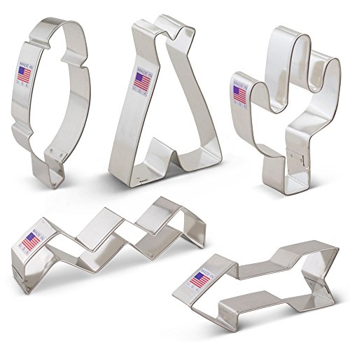 Studio : Ann Clark Cookie Cutters Publisher : Ann Clark Cookie Cutters Product Description Set Includes: Cactus- 4 1/8" x 2 3/4" Teepee- 4 1/8" x 2 7/8" Chevron- 1 3/8" x 5 1/8" Arrow- 1 5/8" x 4 1/2" Feather- 4 1/2" x 1 7/8"