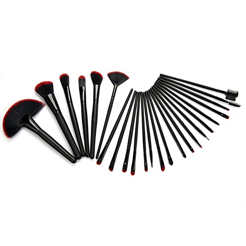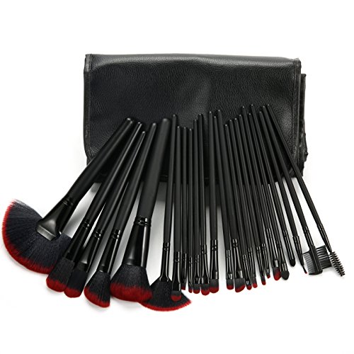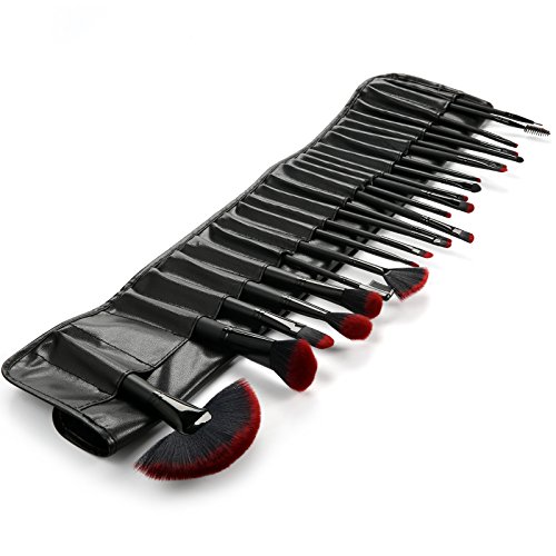 Make up Brushes- Studio Quality Makeup Brushes Set 24pcs Professional Powder Eyeshadow Eyeliner Lip Brush Tool with Leather Pouch, 24 Count (Black)