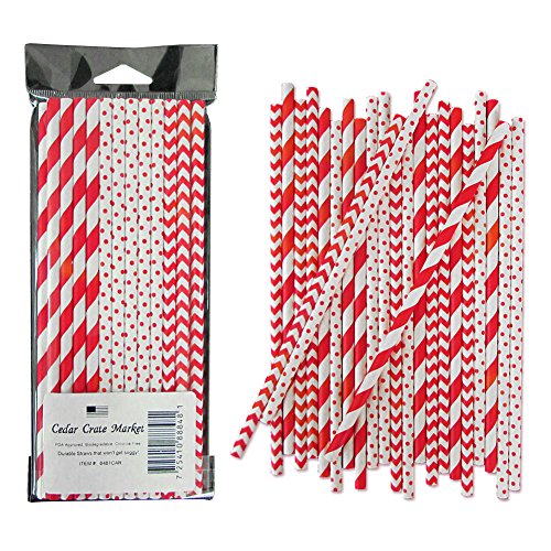 - 24 Cedar Crate Market Brand Paper Straws in Stripes, Chevron and Dots Design, 7.75" (Made in USA) and Matching Cutlery including 16 Spoons, 16 Forks, and 16 Knives by Creative Converting