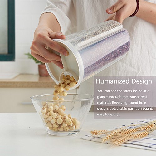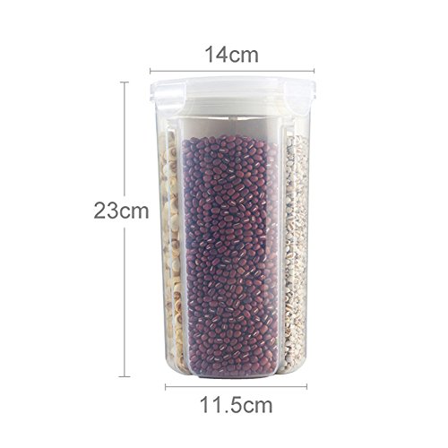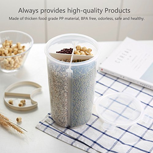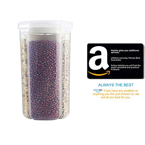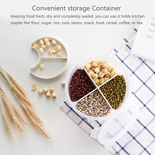 HaloVa Food Storage Container, Airtight Watertight Cereal Keeper, Kitchen Storage Tank Can for Miscellaneous Grains, Dried Fruit, Snacks, Rice and Nuts, 4 Compartments