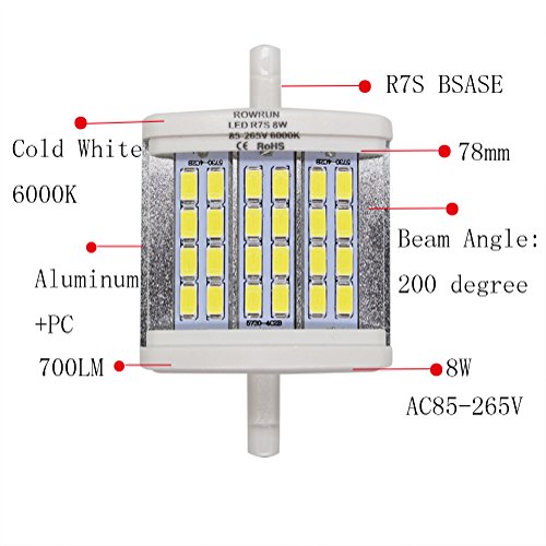 Rowrun R7S 78mm 8W LED Floodlight Night Lights Halogen replacement 24 PCS 5630SMD 6000K Cold White(2 Pack)