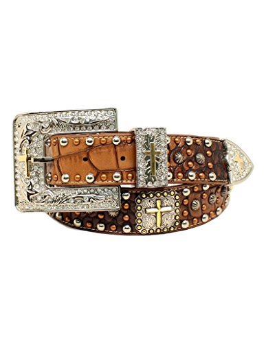 Studio : Ariat Publisher : Ariat Binding : Apparel Product Description Fashionable Ariat ladies belt by medium and f western products features Large square cross conchos with nail heads and rhinestones on a faux crocodile leather. ?This belt also includes a beautiful 3 piece buckle set accented with crosses. ?Available in sizes small through x-large. 0