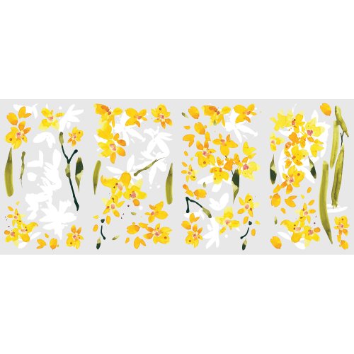 -. Title : York Wallcoverings RMK2494SCS RoomMates Yellow Flower Arrangement Peel & Stick W,