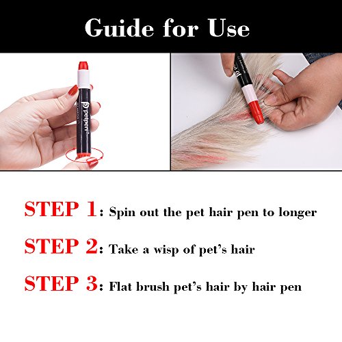 -. Feature : 1.Stylish Pet:Groomers can imagine fanciful designs and then colorfully and artistically create them.New bright, fun shade make your pets stylish / 2.Colors:6 different colors per package: Purple, Blue, Green, Yellow, Pink and Red. / 3.Non-toxic:Do Not Harm To Your Pet's Hair.(Especially No 2-4 Amino Benzene Methyl Ether Which Is Existing In Most Hair Colorants And Able To Cause Cancer) / 4.Convinient:Temporary Hair Color Touch-up, The Staying Power Up To Two Days; Easy To Apply, Color Washes Out Easily With Shampoo. / 5.Shipping:Fast Shipping by Amazon, Delivery in about 3 Business Days