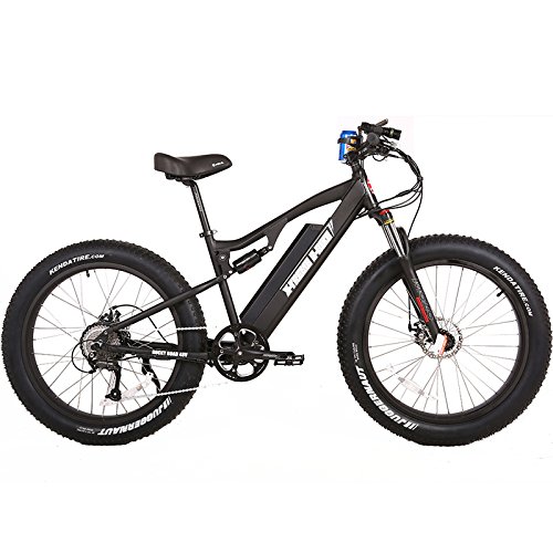 The only Full Suspension Fat Tire eBike on the market! X-Treme is way ahead of the competition. As if riding a fat tire bike was not already the most fun you can have on 2 wheels, add a beefy 500 Watt Zero Resistance gear rear hub motor (if you choose to ride without power you won't feel the resistance of the motor when pedaling) with Digital Torque Sensor and full suspension, and you have the Ultimate Fat Tire eBike! This bike is so smooth, you will never have to get out of the saddle again, so that means more control and more fun. Packed with top quality name brand components, this bike is built tough and built to last. Why we love this bike 48 Volt High Power Long Range Integrated Lithium Batteryv 500 Watt Zero Resistance Motor Up To 50 Miles Range Ultimate Hill Climbing - Tested 18 MPH Constant Speed While Climbing 7% to 8% Grade For 45 Minutes On Battery LCD Smart PAS Digital System With USB Phone Charging Port Digital Torque Sensing Fat Tire Front Suspension Rear Fat Mono Shock Shimano Altus 9 Speed Tektro Disc Brakes High End FAT Tires Velo Seat - Velo Grips Aluminum Everything - Zero Rust - Every Bolt - Every Nut - Every Nipple - Every Spoke - Zero Rust 0 |