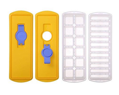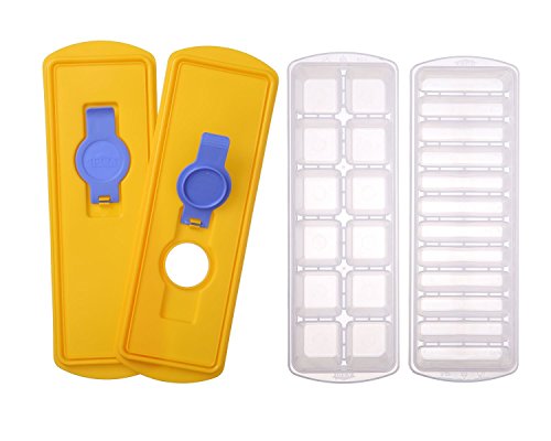 ✔ MAKE 24 ICE CUBE AT A TIME You'll get 2 ice cube tray that creat 12 ice cubes each with removable yellow cover. Top rack dishwasher safe!