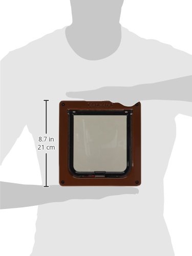 Product Description A perfect way to give your cat or small dog the independence they require. The Cat Flap Door has a four waylockable flap with silent operation. Four way lock allows you to decide what access your pet has: in only, out only, locked in, locked out. Trim and finish both inside and out. Comes complete with template and mounting screws. Transparent (tint colors may vary) Lucite material with weather stripping to keep draft and dirt out. Available in brown, white, gray. Measurements: Overall Height: 7 5/8 in. Width: 7 7/8 in. Depth: 2 in., Cut Out Size: Height: 6 1/2: Width: 6 7/8 in., Size for Pet: Height: 6 1/2" inches . Width:6 ", Self lining to2 in.Model #235B