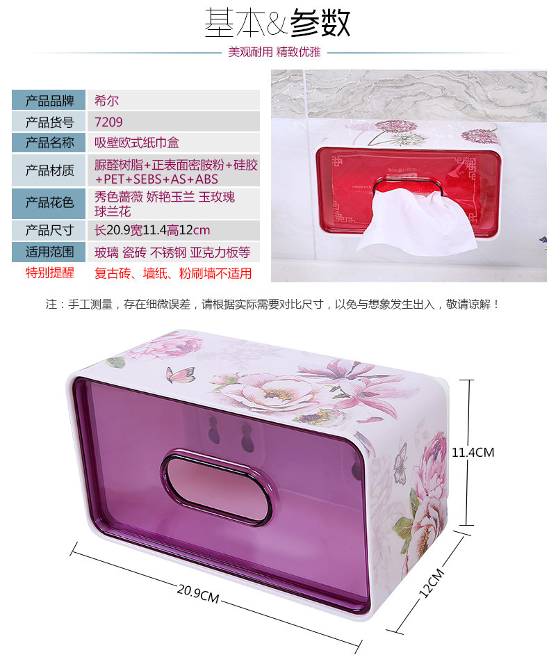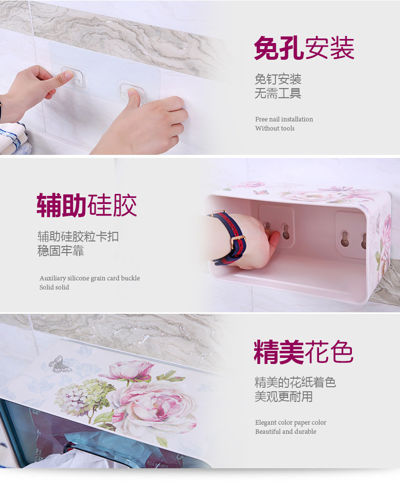 吸壁式卫生间纸巾盒 无痕贴免打孔吸盘家用厕所抽纸盒