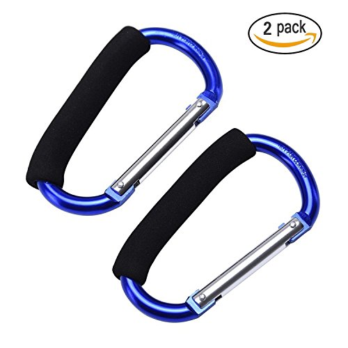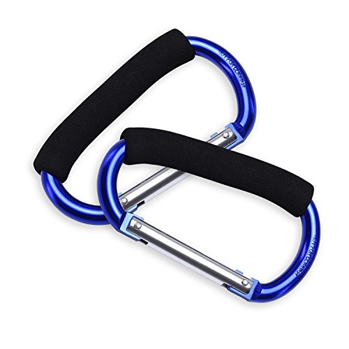 JIALEEY Grocery Bag Shopping Bag Holder Handle Carrier Tool Multi Purpose Snap Hook Stroller Hook Set Organizer Accessories with Soft Foam Grip for Hanging, Pack of 2, Blue