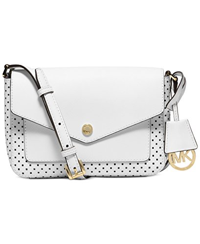 -. Brand : -. Department : women's -. Feature : Perforated bicolor double Saffiano leather / Magnetic snap closure / Exterior features gold-tone (Navy, Sunflower, Optic White) or silver-tone (Black) hardware and 1 front slip pocket (under flap) / 22"-24"L adjustable crossbody strap / 8" W x 5-1/4" H x 2" D -. ProductGroup : Shoes -. ProductTypeName : HANDBAG -. Size : Small -. Title : MICHAEL Greenwich Small Flap Crossbody